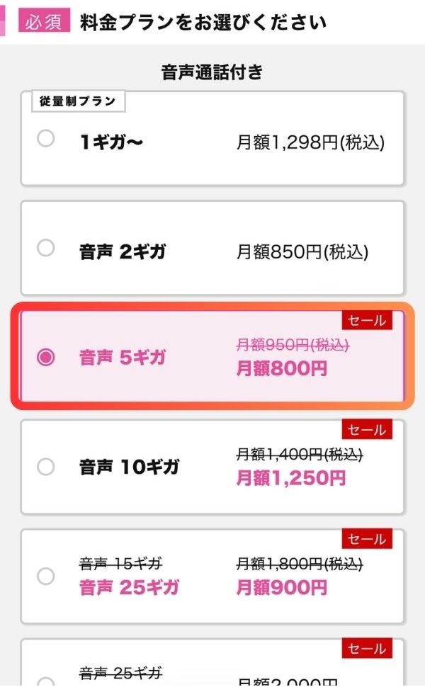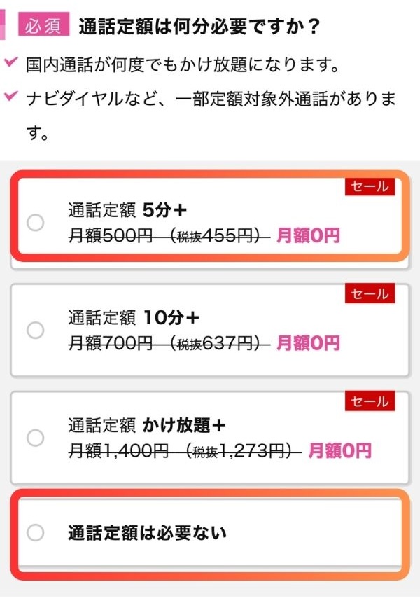 • 【定額通話】👉 「通話定額は必要ない」※必要な人は「通話定額5分+」