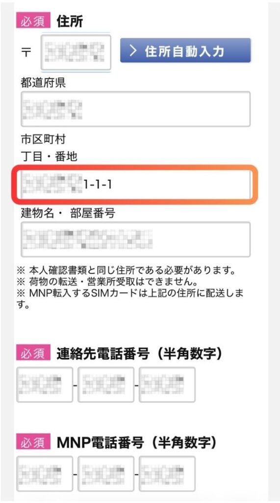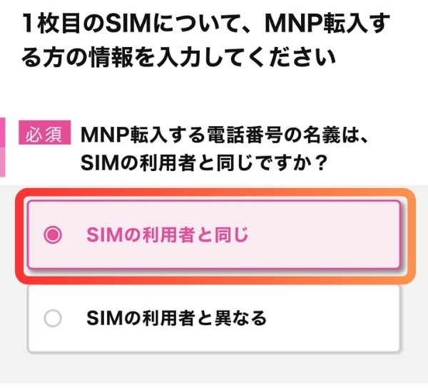 次は電話番号の名義は「SIMの利用者と同じ」にチェックを入れるんじゃ。