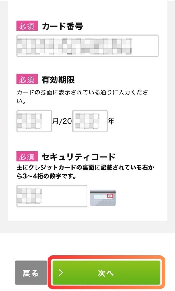 次は支払いの設定だね。 手元に用意したクレジットカードを入力するよ。