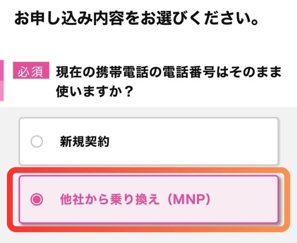 次は「お申し込み内容」か…「他社から乗り換え(MNP)」だね。