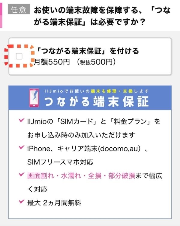 • 新品・高価なスマホの人・どうしても心配な人 👉 「申し込む」(月550円の安心料)
