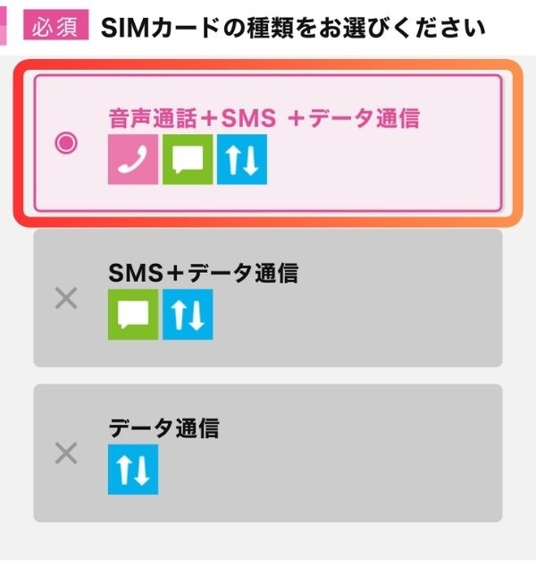 電話番号を引き継ぐので、自動的に「音声通話 + SMS + データ通信」が決まっておるはずじゃ。そのままでOK!